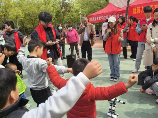 3月30日上午,学校现代信息技术学院党总支联合信息中心和招标采购中心党支部在河职佳苑儿童游乐场举办了一场“AI进社区”机器人亲子互动日活动。