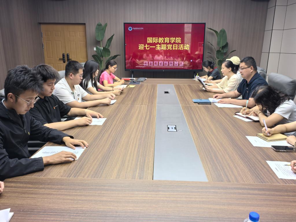 6月25日下午,学校国际教育学院直属党支部在健行楼302B举办了“七一”主题党日活动,庆祝中国共产党成立103周年。通过系列活动激励师生党员坚定理想信念,勇担时代使命。学院师生党员代表22人参加活动。