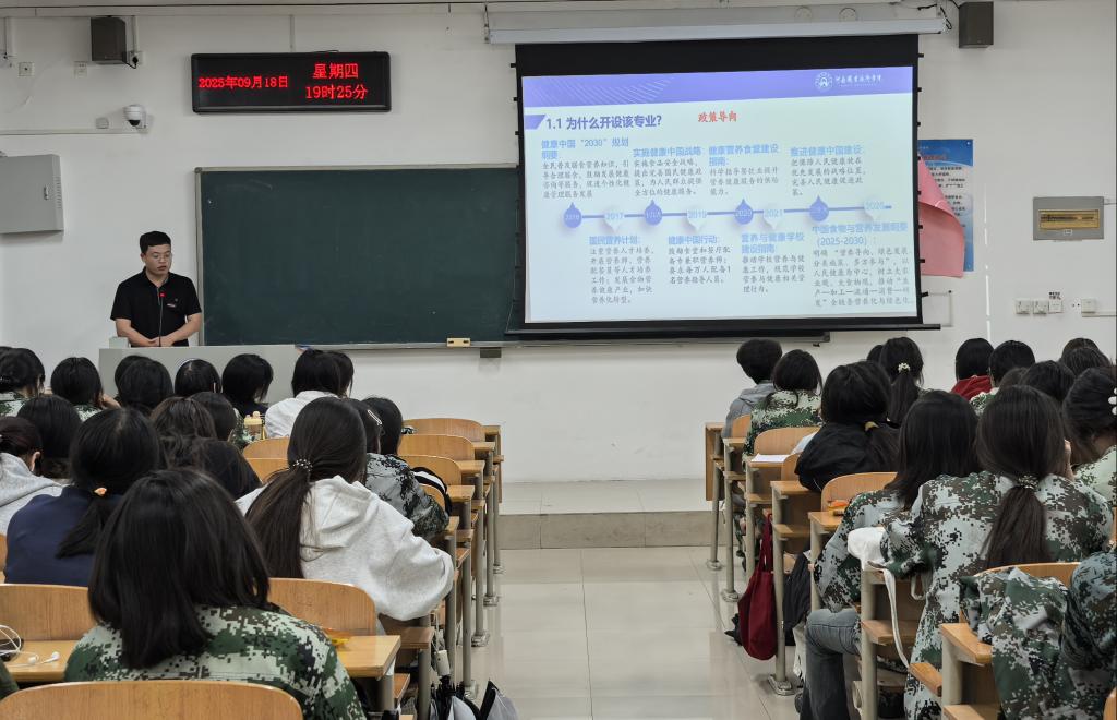 9月18日晚,学校食品工程学院在明德楼教室分专业同步举办了新生专业思想教育专题讲座,帮助2025级新生深入了解专业内涵、明确学业发展方向、增强对专业的认同感。本次活动覆盖食品智能加工技术、食品检验检测技术、食品营养与健康三个专业,全体2025级新生参加,各专业教研室主任分别担任主讲。