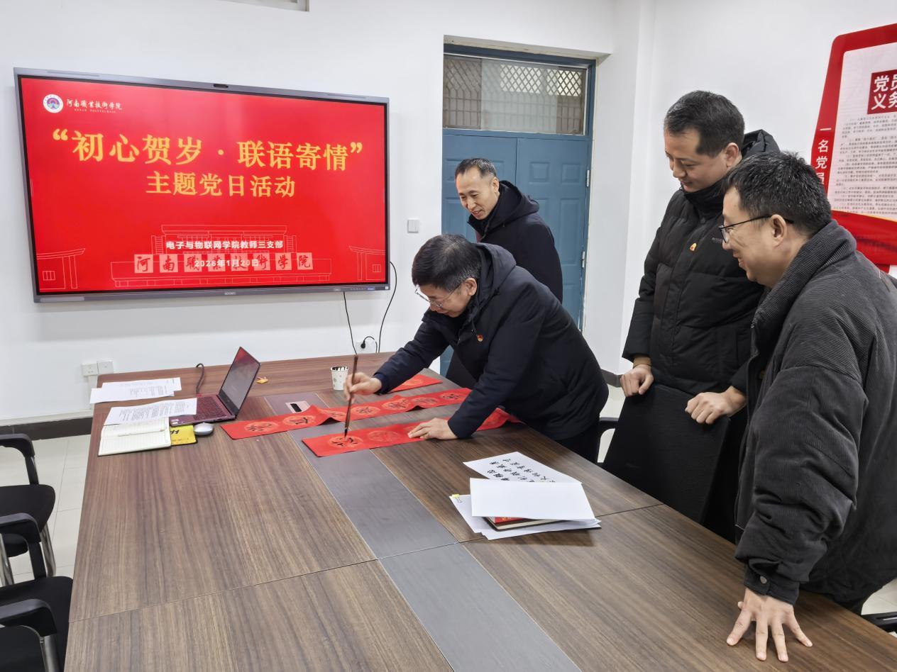 近日,在2026年新春佳节来临之际,学校电子与物联网学院组织教师第一、第二、第三党支部及学生党支部分别开展“初心贺岁・联语寄情”红纸对联书写主题党日活动。