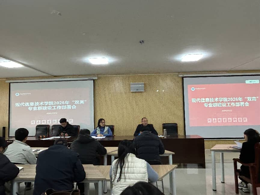 2月27日上午,学校现代信息技术学院召开2026年"双高"专业群建设推进会。学院党总支书记、院长李纪云主持会议,全体教职工参加会议。