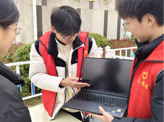 3月23日下午,学校现代信息技术学院“数智红芯·E路先锋”志愿服务队走进相济路社区,结合专业优势开展便民服务,让技术赋能生活,用志愿传递温暖。
