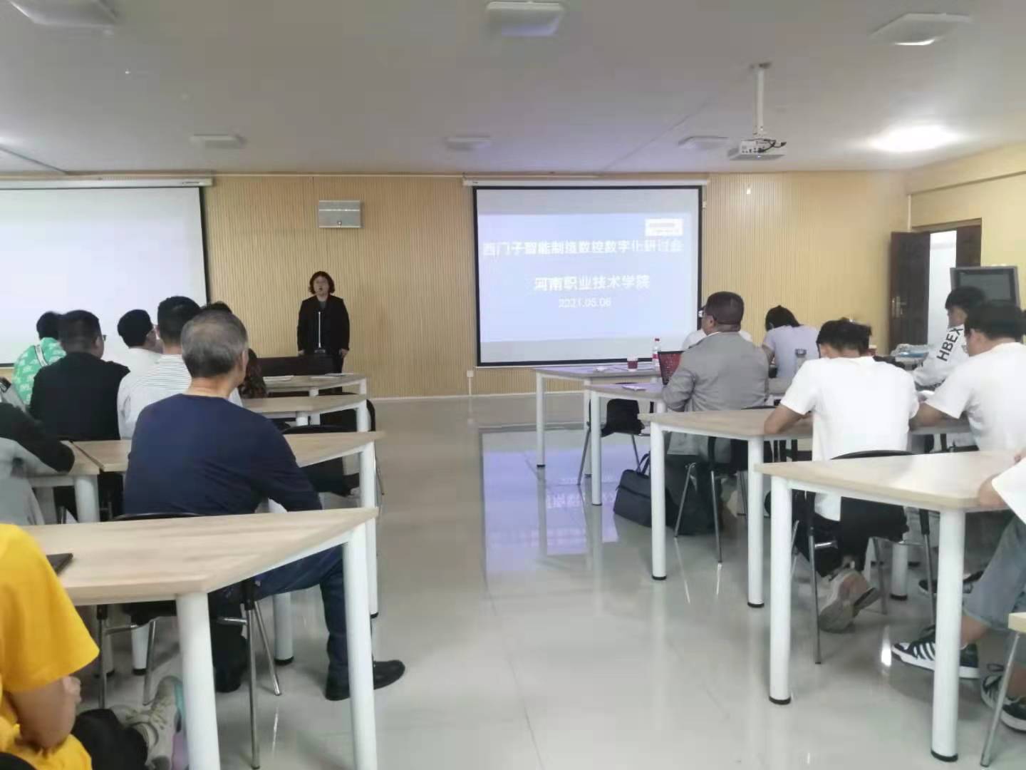 5月6日下午,西门子“睿创之旅”暨西门子智能制造数控数字化研讨会在笃行楼525会议室举行。西门子(中国)有限公司数控技术专家曾凡凡、梁军,西门子(中国)有限公司河南教育市场总监刘坤,西门子合作伙伴河南聚合科技总经理王路宽。学校副院长肖珑以及机电工程学院百余名师生代表参加研讨会。