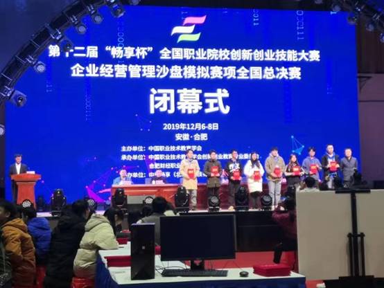 12月6日至8日,第十二届“畅享杯”全国职业院校创新创业技能大赛企业经营管理沙盘模拟赛项全国总决赛在合肥财经职业学院举行,共有来自全国106所职业院校的126支队伍选派的504名参赛选手同台竞技。激烈角逐,我校商学院市场营销专业谢卫星、朱宏恩、孙佳良和刘露丝等四位同学组成的参赛队在赛场上奋勇拼搏、力战群雄,以优异成绩荣获该赛项团体“一等奖”。赵丽英和李明慧两位教师被评为“优秀指导教师”。