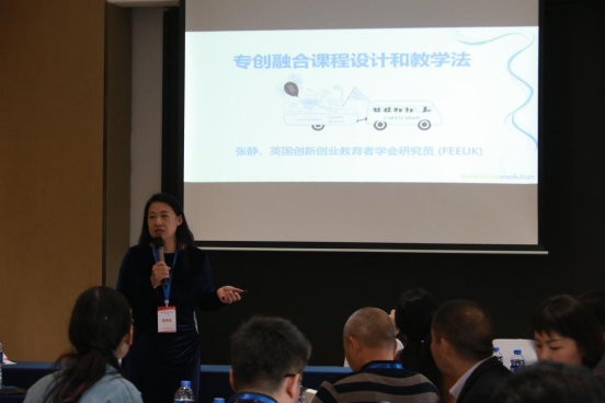 张静老师带来了“专创融合课程设计和教学法”工作坊。她从国际前沿创新创业教学问题、改变创新创业教学师资创新思维方式、探索创新创业与专业相融合的教学课程设计思路和评估方式等方面进行了分享。