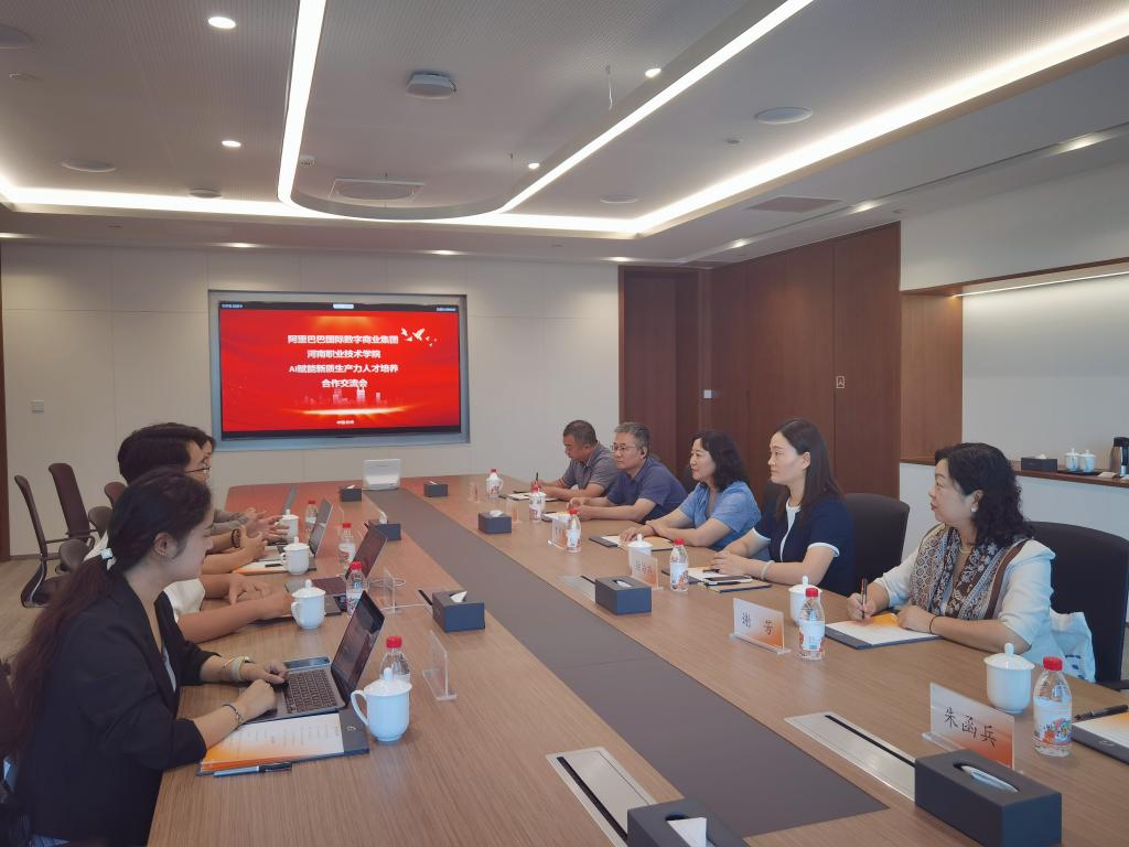 8月15日上午,校党委副书记、校长夏新颜带队赴阿里巴巴总部洽谈校企合作。阿里巴巴国际数字商业集团AI Business生态负责人黎子豪、高校事务负责人刘辛铭、项目运营专家丁璐、培训认证专家郑王含,学校发展规划处、数字创意与设计学院以及省级科研平台相关负责同志一同参加座谈会。