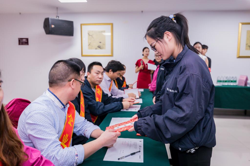 整个仪式庄严而隆重,包括徒弟和师傅签订师徒协议、行拜师礼、学徒向师傅递拜师帖,师傅赠送学徒授业语等环节。A+雏鹰计划项目企业总教练熊集舟作为师傅代表发言,承诺师傅们定会履行带徒职责,做到在思想上引导、作风上言传身教、业务上传帮带。同时,校方代表为企业导师颁发聘书,践行了校企师资互聘互用、取长补短、共同提高的管理机制。(供稿:电气工程学院 合作交流处;审稿:李玉芝)