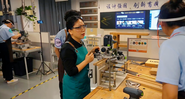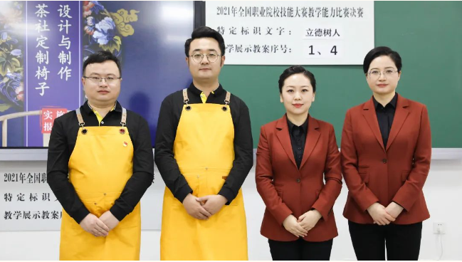 最艰难的要数2021年全国教学能力大赛,“疫情之下的首次比赛,变数多,不确定因素也多,每个环节都有挑战。”白玫记得,当年他们的选题是《茶社定制椅子设计与制作》,包含理论和实操两部分,此次教学设计最大的亮点就是将中式设计元素和传统榫卯结构相融合,同时使用手工和小型机械相结合的方式来制作成品。“白天大家都有课,只能晚上来弄,加班到一两点是很常见的。”