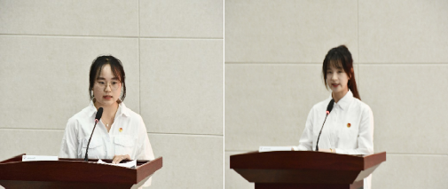 学院团委副书记李睿娴在发言中简述了自己的工作经历,对学院提供的成长平台和所有团学骨干的配合表示感谢,鼓励大家用青春和智慧为学院发展谱写新篇章。学院团支书代表常旭敏从自身所在团支部各项工作出发,向同学们分享了其所在团支部在扎根基层教育等团学工作中所做出的成就,希望同学们在团学工作中要踏实勤奋、勤思、苦学、力行。