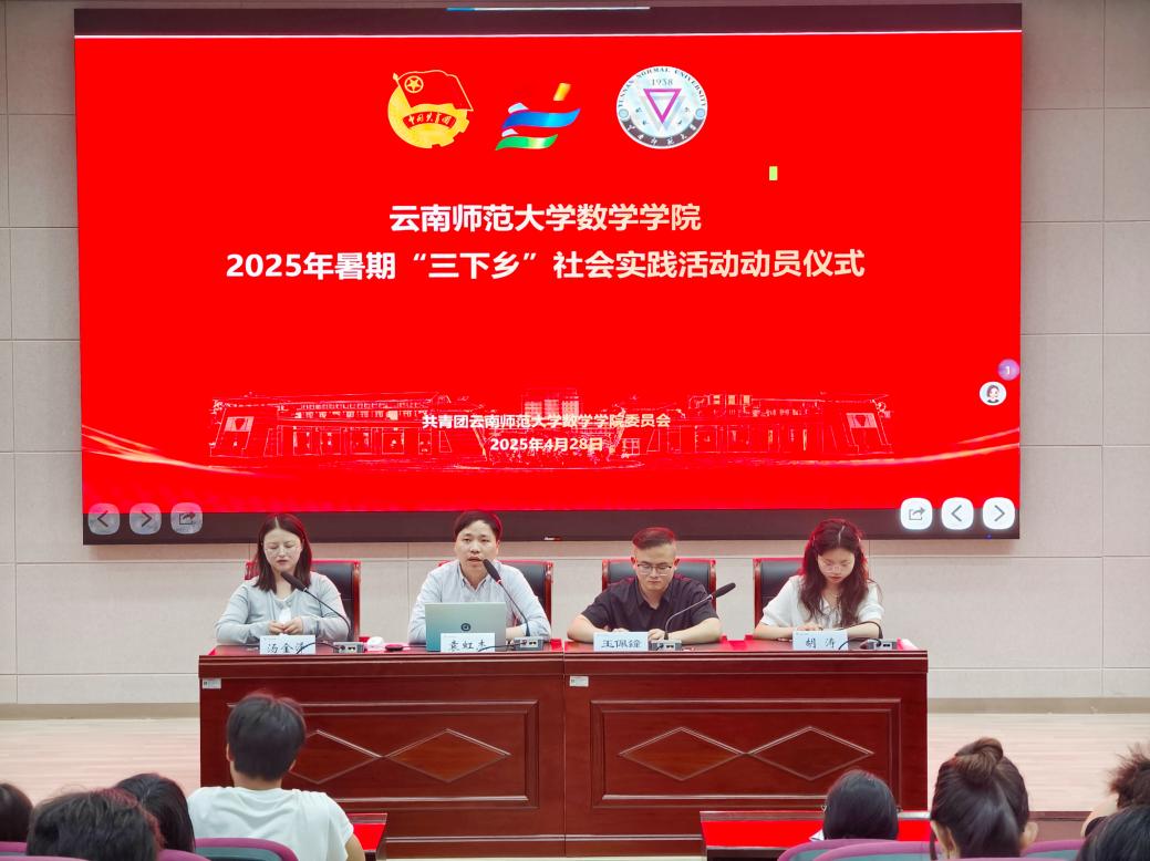 4月28日,数学学院2025年暑期“三下乡”社会实践活动动员仪式在201报告厅举行。学院团委书记袁虹杰,辅导员玉佩鐘出席此次会议,2024级全体本科生参会。