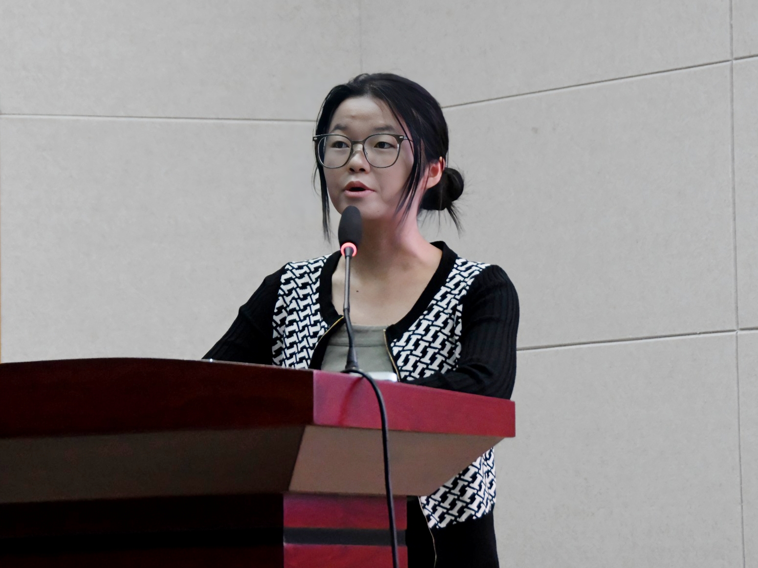 学院团委书记袁虹杰讲话,大学生运动会是展现学院体育教育成果和学生青春风采的重要平台。通过参与运动会,不仅能够提高同学的身体素质,培养团队合作精神和竞争意识,更能增强学生的集体荣誉感和归属感,希望同学们积极参与运动会,强身健体,丰富大学生活,焕发出青春的独特活力。