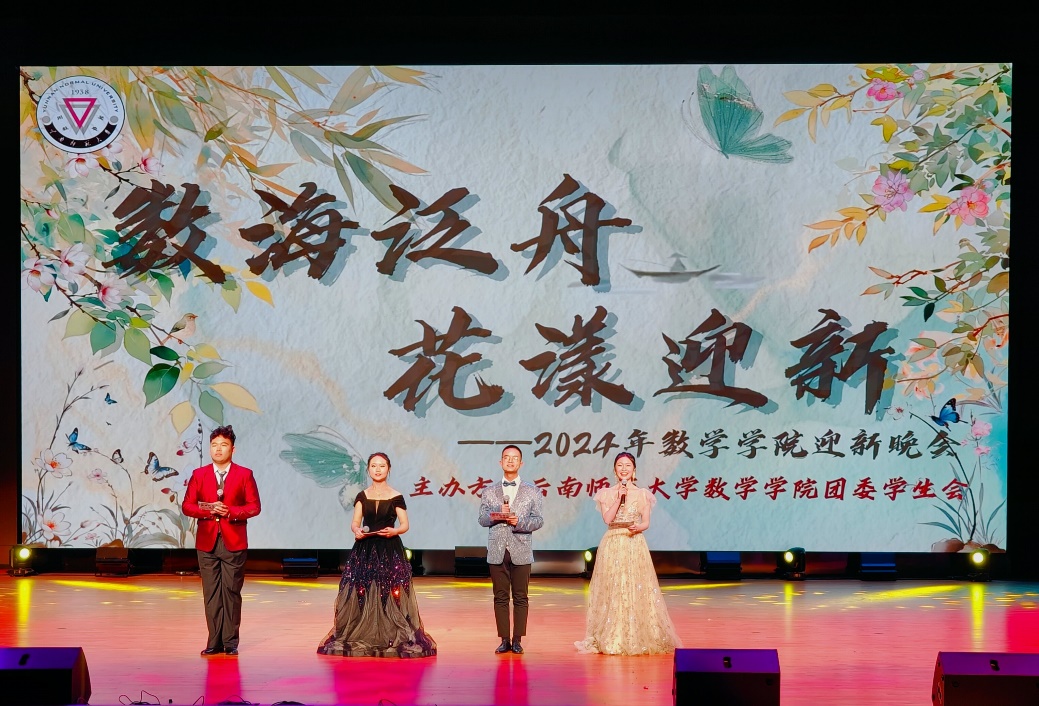 11月16日,数学学院“数海泛舟 花漾迎新”2024迎新晚会在学校东区演播厅举行。学院党委书记王世波、副书记段剑金、副院长黄斌超和600余名师生代表参会。