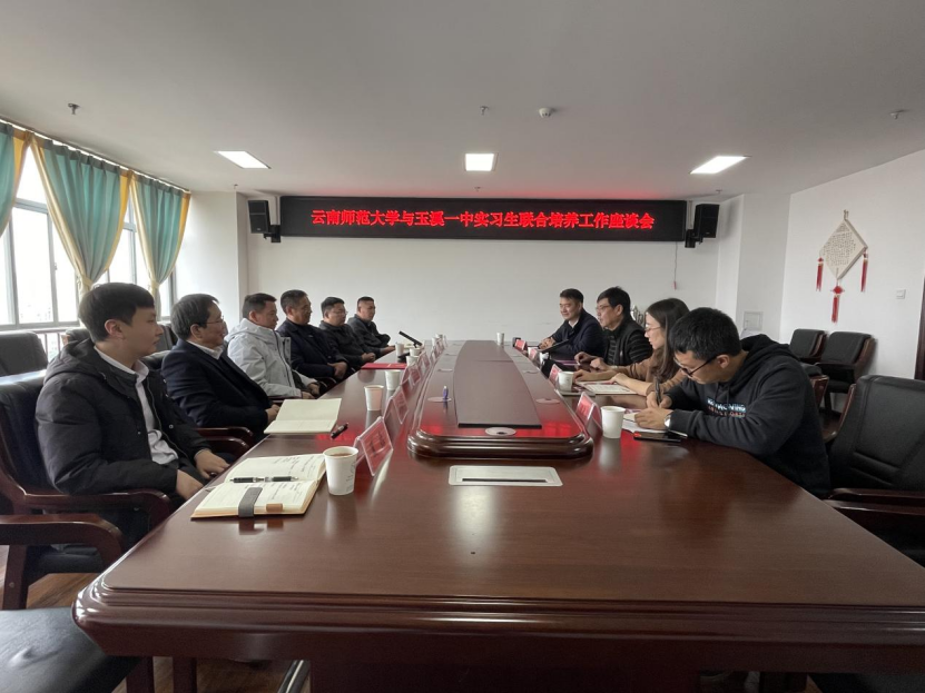 刘宗立副校长一行首先前往玉溪一中进行调研,与玉溪一中校长李富春及相关负责人开展座谈。座谈会上,李富春校长指出,联合培养工作为云南师范大学与玉溪一中建起了合作沟通的桥梁,为玉溪一中输送了优质教师储备人才及前沿教育教学理念,有效助力玉溪一中教师教学质量提升。刘宗立副校长对玉溪一中给予我校师范生培养工作的支持与帮助表示衷心的感谢,提出继续深化两校联系与合作,为毕业生搭建更优质的实习就业平台。