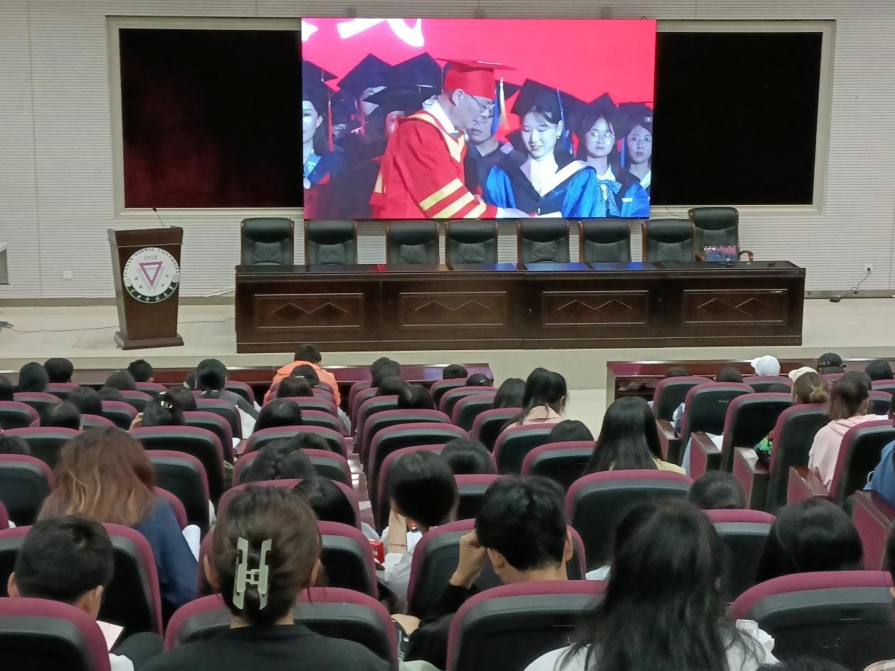 当日晚18:50,数学学院部分毕业生于云南师范大学2022届毕业生毕业典礼暨学位授予仪式数学学院分会场(同析楼4-201报告厅)观看典礼。