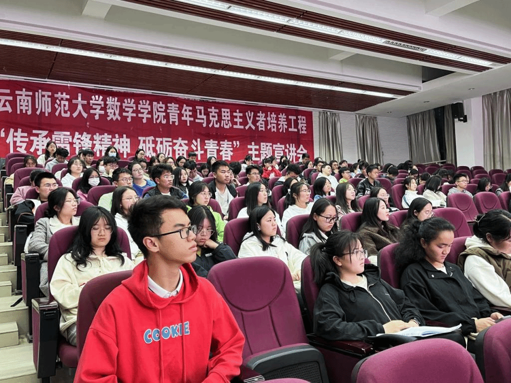 为深入学习贯彻习近平新时代中国特色社会主义思想,进一步提高学生干部队伍素质,增强基层团学组织的创新能力和实践能力,提高广大学生骨干思想觉悟,数学学院于2023年3月9日晚19:00在同析4栋201报告厅举办“传承雷锋精神,砥砺奋斗青春”主题宣讲会,学院全体青马培训班成员参加此次宣讲会。