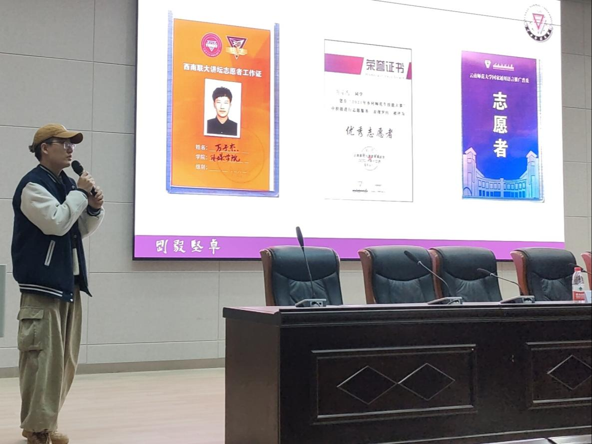 万子杰就义务支教和志愿服务方面为学员们介绍了云南师范大学研究生支教团等多个志愿组织,并全面介绍了云南师范大学研究生支教团的具体工作内容以及招聘面试的要求,鼓励同学们踊跃加入到基层志愿服务的队伍中来。