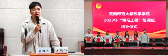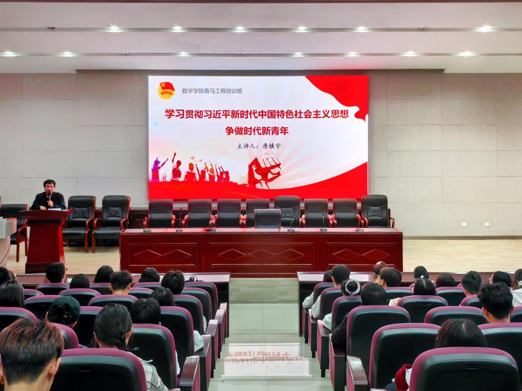 为学习宣传贯彻习近平新时代中国特色社会主义思想,强化青年骨干的素质和能力,夯实团的基层基础建设,11月12日晚,数学学院于同析4幢201报告厅开展“学习贯彻习近平新时代中国特色社会主义思想,争做时代新青年”主题讲座暨2023年青年马克思主义者培养工程培训班结业仪式。数学学院党委副书记詹镇宇担任主讲人,团委书记袁虹杰主持培训,数学学院“青马工程”培训班全体学员参加此次培训。