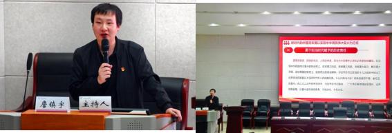詹镇宇围绕“学习贯彻习近平新时代中国特色社会主义思想,争做时代新青年”的主题,强调新青年一代应以成长为德智体美劳全面发展的社会主义建设者和接班人为目标,要以实现中华民族伟大复兴为己任,毫不动摇坚持党对青年的指导,并提出重视青年的未来,就是重视国家的未来。紧接着,詹镇宇结合个人经历,激励同学们要坚定理想信念,艰苦奋斗,把握好课余时间,加强意志和品德的磨炼,在时代中历练,在尽责中成长。