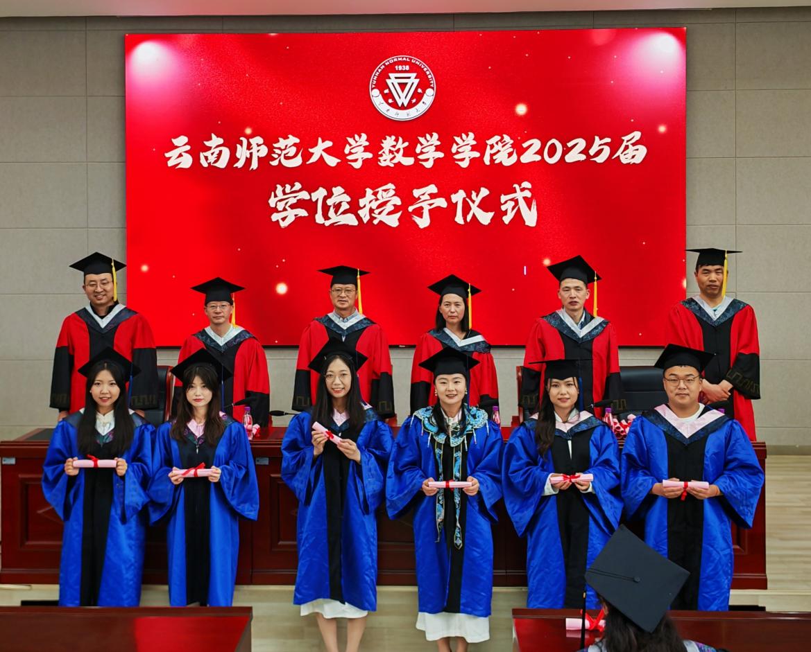 6月26日,云南师范大学数学学院2025届毕业典礼暨学位授予仪式在201报告厅隆重举行,党委书记王世波、院长刘祥清、副院长王天志、王亮、黄斌超和学位分委员会委员李俊青出席,2025届毕业班班主任、辅导员及全体毕业生参加。学院党委副书记段剑金主持典礼。