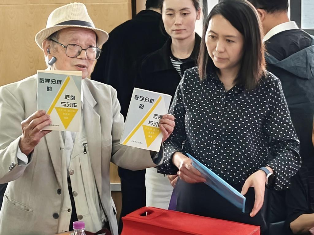 座谈会的一大亮点是王文偁老师国家级教学成果奖二等奖证书的捐赠仪式。年近九旬的王文偁老师,在数学学院辛勤耕耘了37年,他深情回顾了教学成果奖的筹备与评选过程,特别提到李玉华老师的全程参与与贡献。王老师还分享了自己学习数学分析的心得与教学改革的经验,强调学生主体地位与习题课的重要性。他将个人珍藏的数学分析教改手稿、编著的教辅材料及教学成果奖证书捐赠给学院,以实际行动支持学院教育事业的发展,充分体现了一位老教师对学院的深厚感情与无私传承。