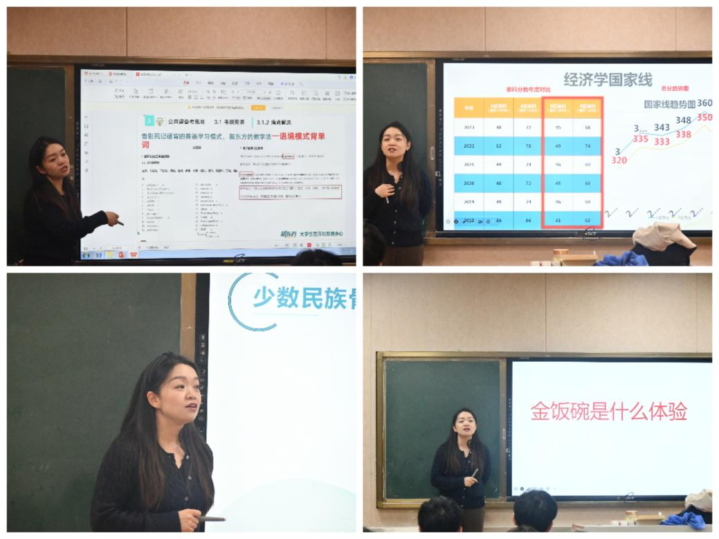 讲座尾声,进入互动答疑环节。陆洁耐心回应在场学子的提问,无论是 “目标院校专业课参考书如何筛选”“跨专业考研如何弥补专业基础差距”,还是 “考研复习时间如何合理分配” 等具体问题,她都结合自身经验与专业知识细致解答,切实为学子们扫清备考疑惑。答疑结束后,陆洁与同行的两位新东方老师一同为在场学子分发免费考研教辅资料,涵盖考研英语真题解析、数学专业备考讲义、院校专业选择指南等实用考研资料。