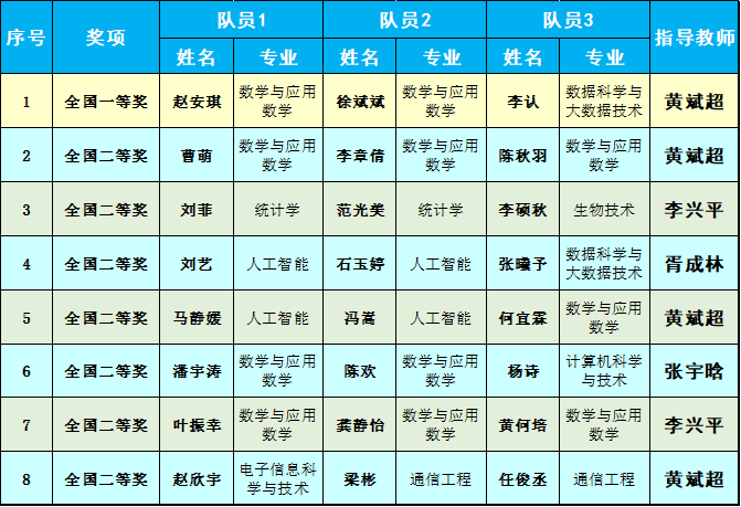 本次竞赛中,我校参赛学生来源广泛,涵盖数学学院、信息学院、物理与电子信息学院、经济学院、管理学院、生命科学学院、地理学部、化学化工学院、能源与环境科学学院、教育学部、法学与社会学学院等多个学院,充分体现了我校学科交叉融合、协同育人的良好成效。