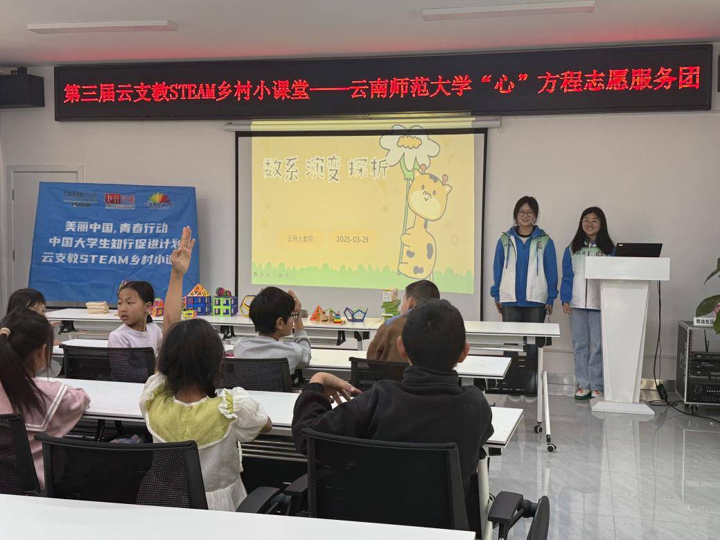 3月29日,云南师范大学数学学院“心”方程数学文化科普团的志愿者们走进致远社区,开展以“数学文化知识与模型科普”为主题的志愿服务活动。此次活动聚焦数学知识科普与数学模型展示,旨在引领参与活动的同学们探索数学的奇妙世界,点燃大家内心对数学的热爱之火。