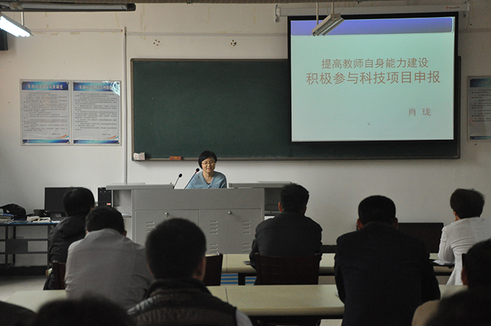 4月10日下午,电气工程系召开科研专题会议,副院长肖珑应邀作题为“提高教师自身能力建设,积极参与科技项目申报”的报告,该系领导和教职工30余人参加。