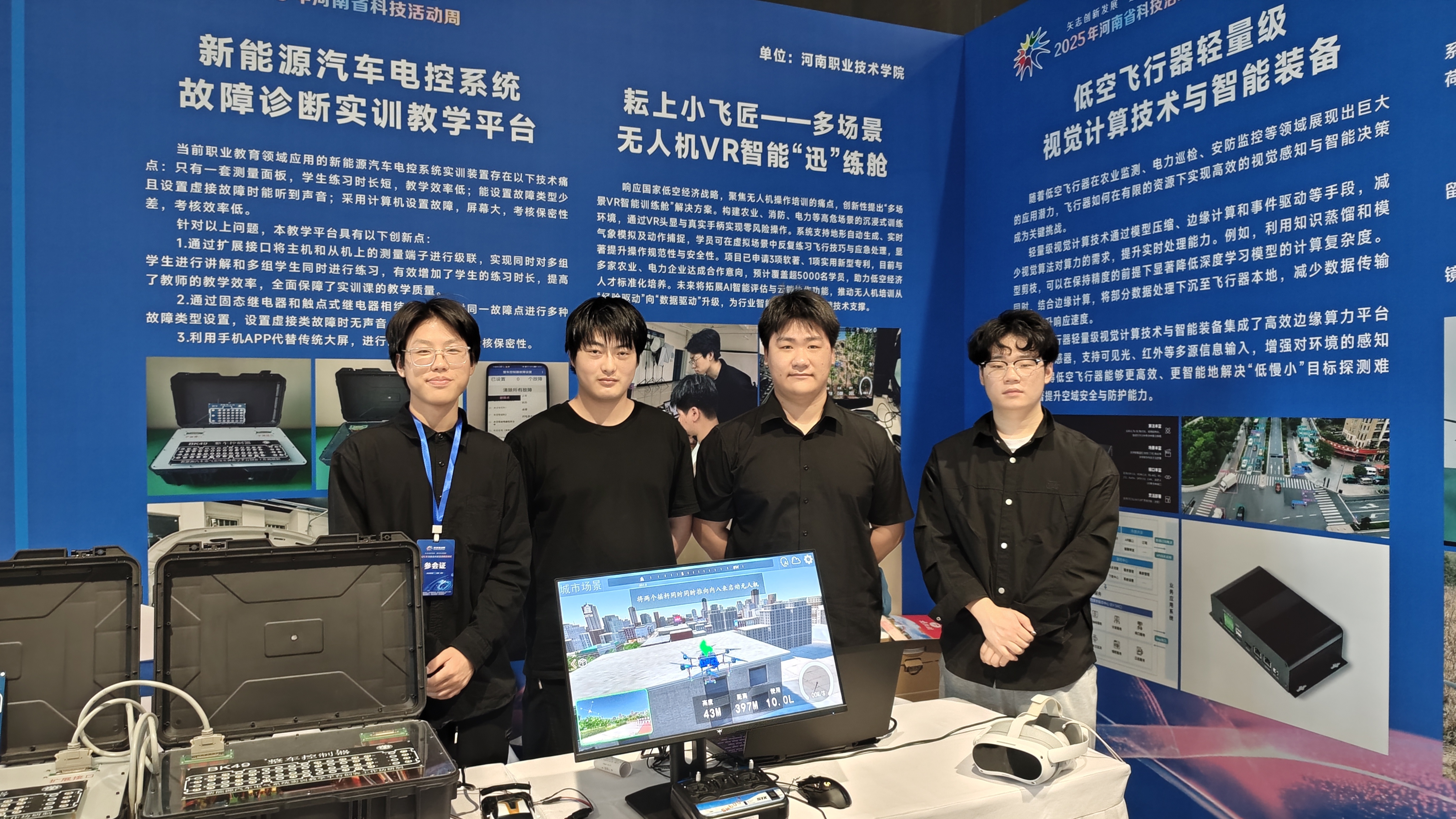 近日,2025年河南省科技活动周启动仪式在郑州科技馆举行。河南职院四项科技成果“耘上小飞匠——多场景无人机VR智能‘速’练舱”“新能源汽车电控系统故障诊断实训教学平台”“醋里乾坤——非遗传承红薯醋”“药食同源花馍”参加主场展览活动,向社会各界集中展示了学校在科教融汇、产教融合、文化传承与科学普及方面的最新探索与显著成果。