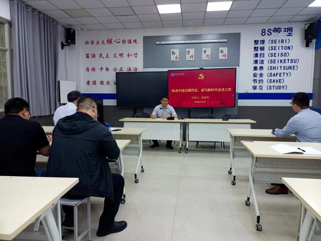 夏喜利主要分享了现代化与人类文明、中国式现代化的发展脉络、内涵和本质要求。他指出,中国式现代化是中国共产党领导全国各族人民在艰苦卓绝的斗争中长期艰辛探索和实践的结果,中国的现代化发展之路既不同于西方国家建立在长期掠夺其他国家基础之上的现代化,也不同于前苏联过度依赖和推崇重工业和国防工业而轻视民生的现代化,是具有中国特色的中国式现代化,即人口规模巨大的现代化、全体人民共同富裕的现代化、物质文明和精神文明相协调的现代化、人与自然和谐共生的现代化、走和平发展道路的现代化。他强调,党的二十大为我们开启了全面建设社会主义现代化国家新征程,我们要深入理解中国式现代化的深刻内涵,珍惜和守护来之不易的现代化,以更加饱满的热情投入到中国式现代化的伟大事业中。