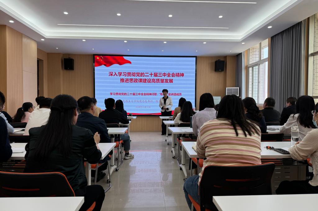 梁杰指出,党的二十届三中全会是在以中国式现代化全面推进强国建设、民族复兴伟业的关键时期召开的一次十分重要的会议。学习宣传贯彻党的二十届三中全会精神是当前和今后一个时期的首要政治任务,马克思主义学院各基层党支部、全体思政教师要迅速学习起来,要发挥马院理论宣传服务功能,组建理论宣讲团,面向全校师生开展好理论宣讲;要将全会精神融入各门思政课教学当中,为培养担当民族复兴重任的时代新人贡献力量。
